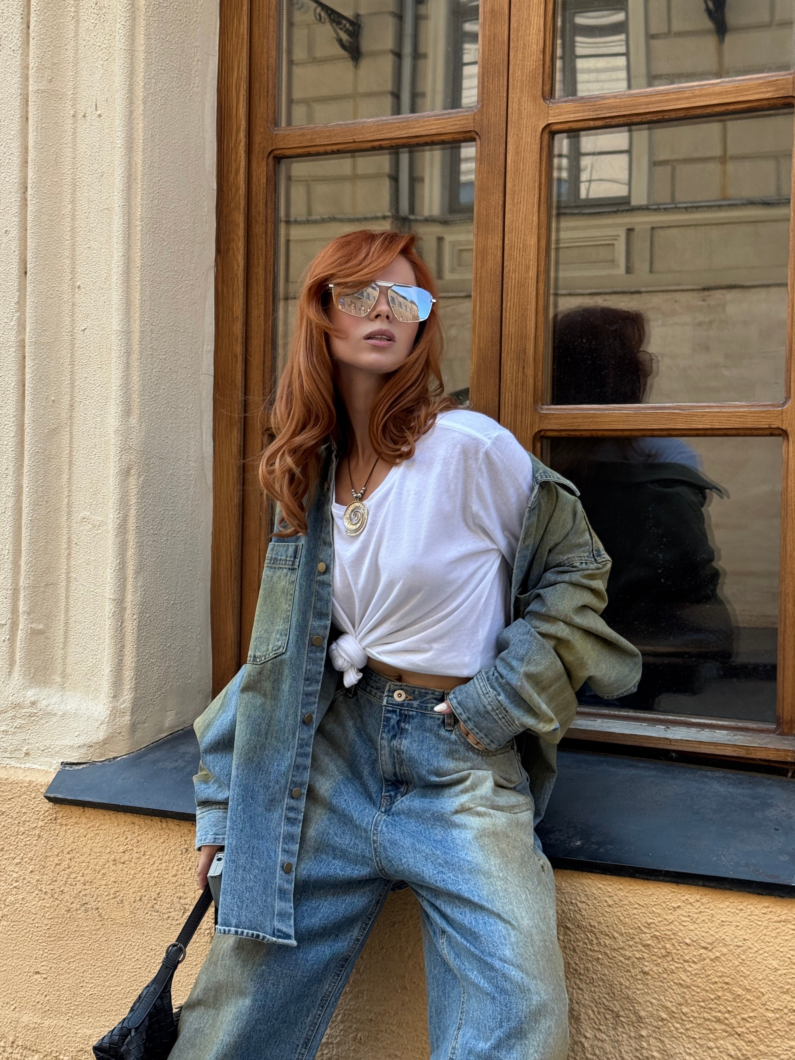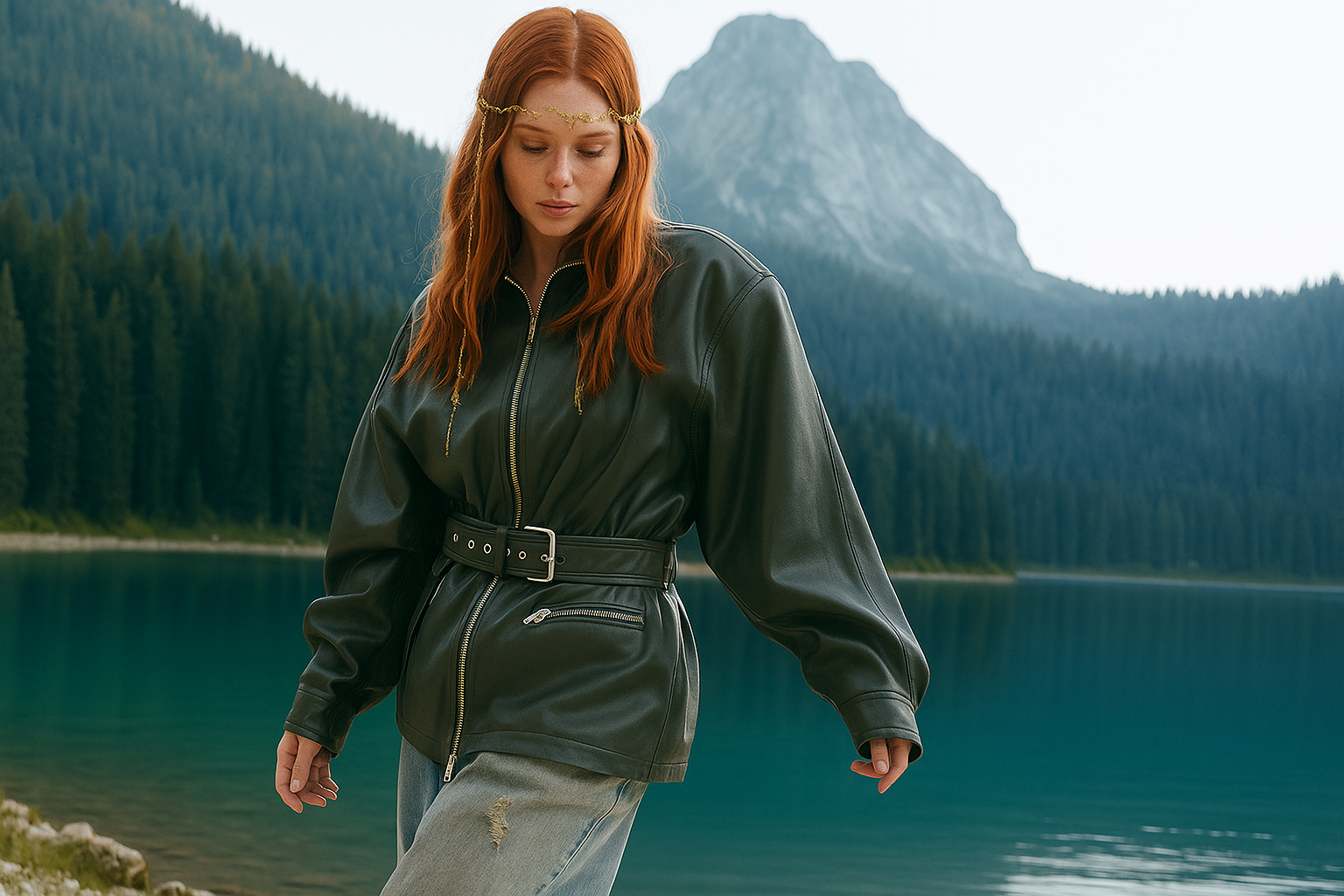 Шкіряна куртка на плечі